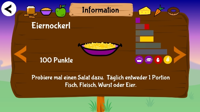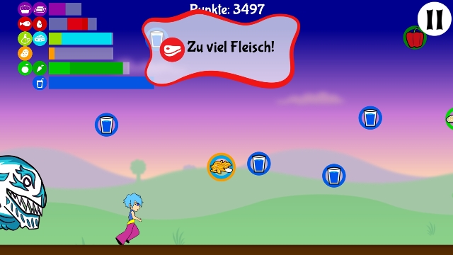 Die Gaming-App funktioniert nach dem Prinzip eines Jump’n’Run-Spiels. Die SpielerInnen haben die Aufgabe, Lebensmittel aufzusammeln, die die Spielfigur mit Energie versorgen. Je ausgewogener sie ernährt wird, desto leistungsfähiger ist sie. Hindernisse können nur mit ausreichend Energie überwunden werden, und dazu ist wiederum Ernährungswissen der SpielerInnen notwendig.