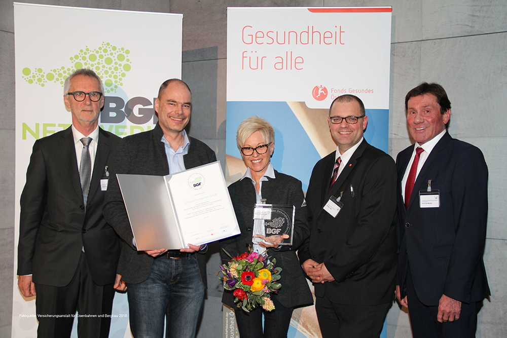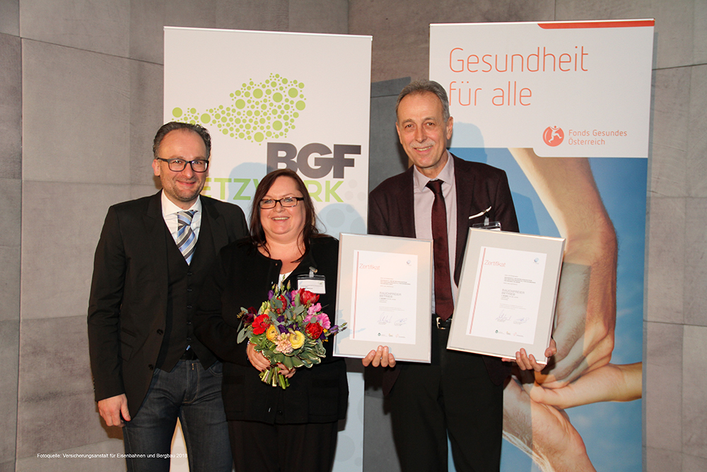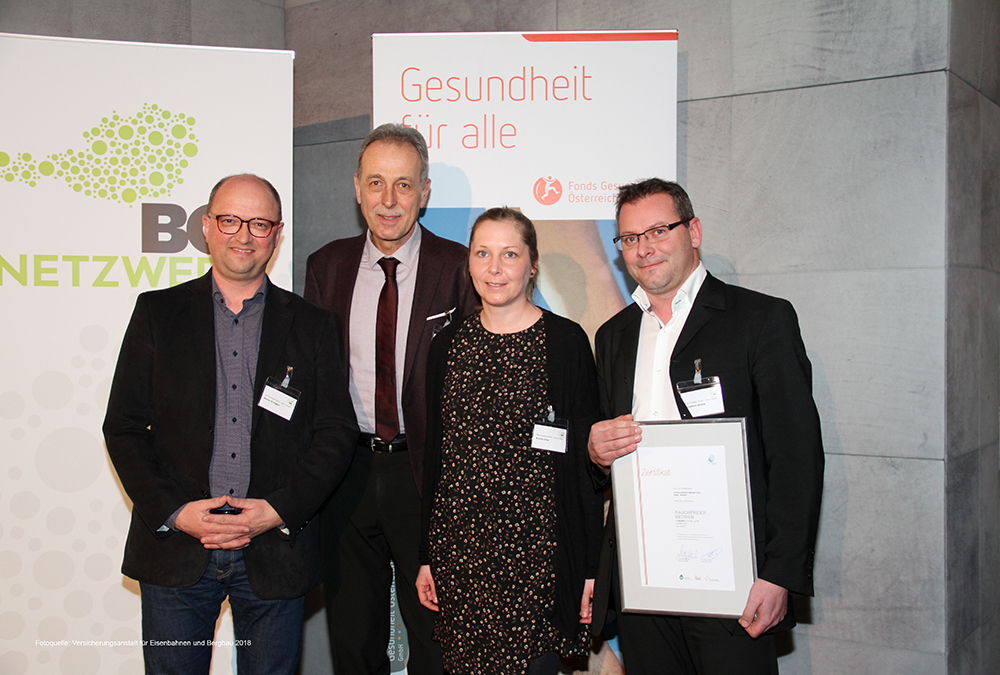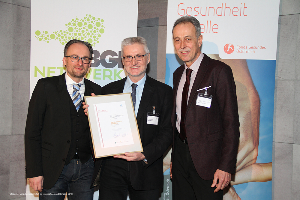 Neben dem BGF-Gütesiegel, welches die Leistung für ein erfolgreich abgeschlossenes BGF-Projekt bzw. die Implementierung in den Regelbetrieb prämiert, wurde heuer bereits zum fünften Mal das Zertifikat „rauchfreier Betrieb“ übergeben.